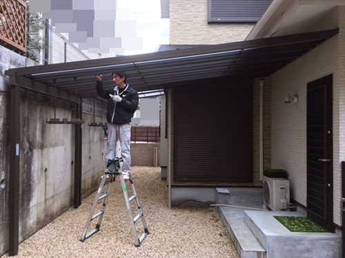 まずは砂利敷きだった場所一面にテラス屋根をつける工事から。