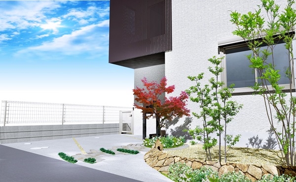 これってLABOTが建築的考えで外構を考えているから計画出来る案。