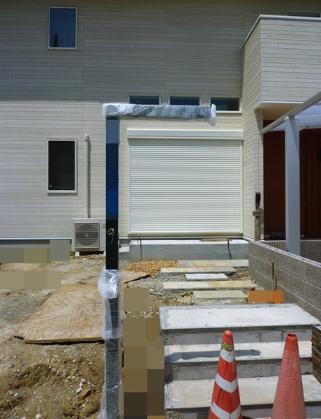 先日から記事を更新している精華町の新築外構工事、機能門柱が施工されました。