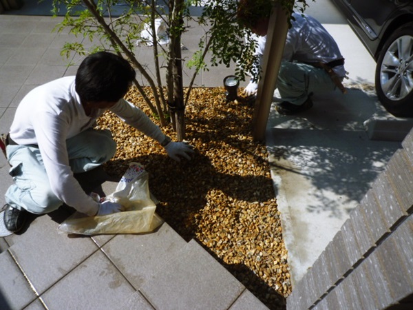 アイビーを植えていただいていたのですが、全部撤去して化粧砂利を敷き詰めました。