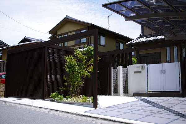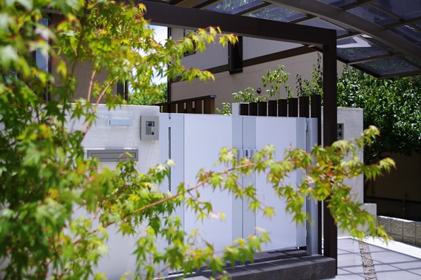 休日の外出時に乗る大切な車はきっちりゲートをつけた半分クローズ外構のような計画にしています。