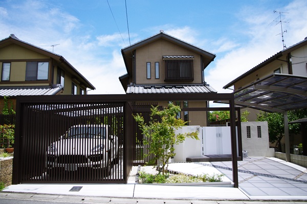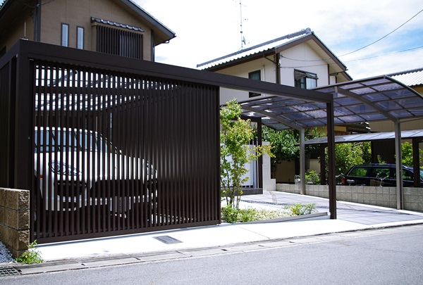 クローズ外構と言っても、日常でよく使う車はオープンスペースに駐車して、
