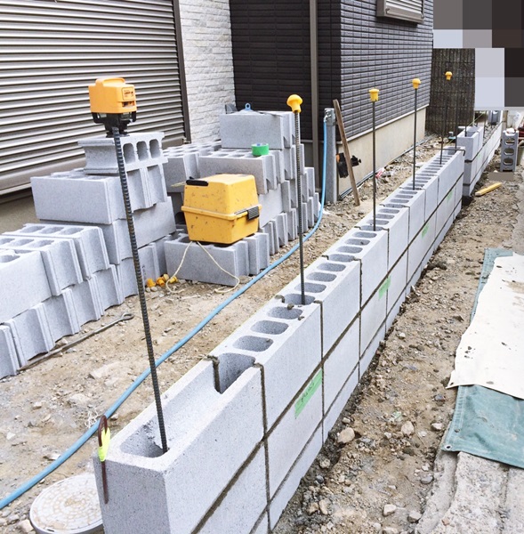 境界ブロックの役割と目隠しの意味もある腰壁仕様のココマ。