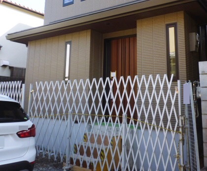 ↓現場調査の時。 階段が仮設なので門まわりから工事を進めて、お客様の出入りがしやすくなるような工程を組みました。