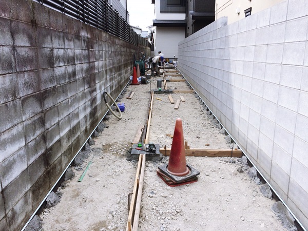 真砂土部分には最後に大磯砂利を敷き詰めて泥跳ねがないように仕上げてね~と、職人さんにお願いしました。