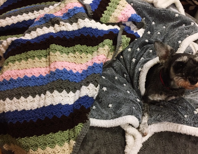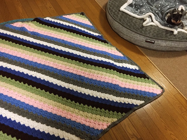 子供の頃にアメリカでお世話になっていた友人から、私の愛犬のために手編みのブランケットが送られてきました。