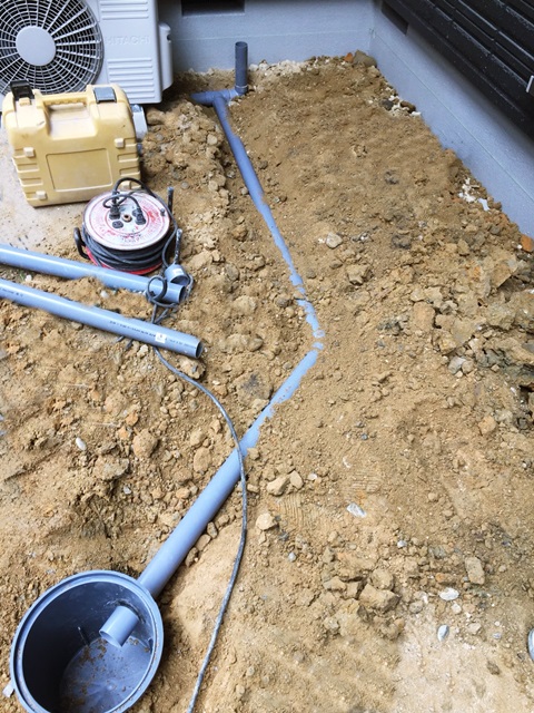 裏庭とは言え広いスペースなんで、まずは水溜まりが出来ないように排水計画をきちんとしていきます。