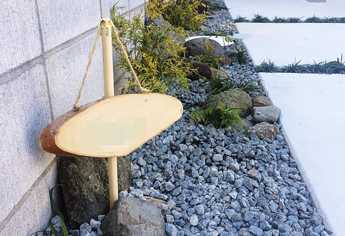木のプレートは息子さんが表札を作ってくれたもので、
