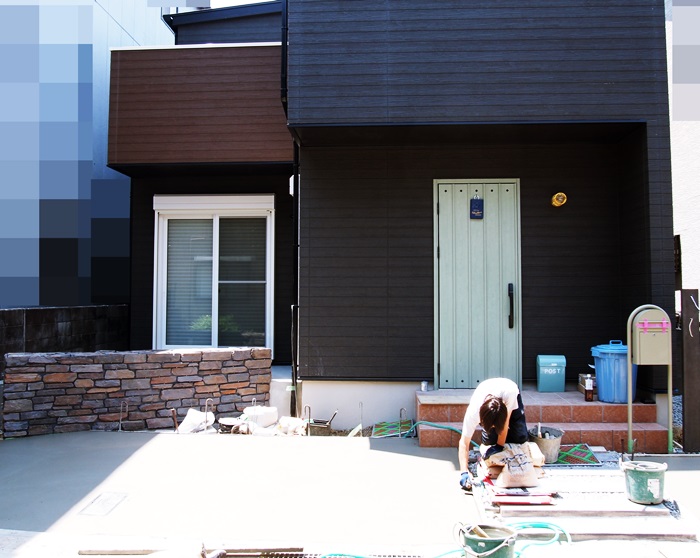 大山崎でオープン外構工事中のK様邸がその工程に入ったよー