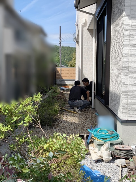 敷かれてた砂利も一旦撤去して、しっかり防草シートをしいたからこれで雑草対策もバッチリ。