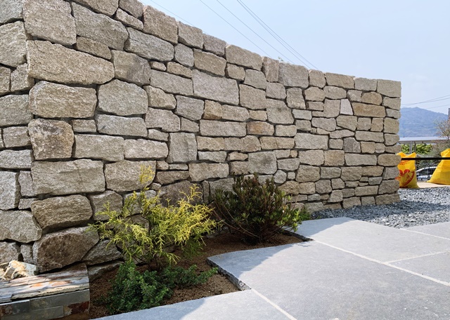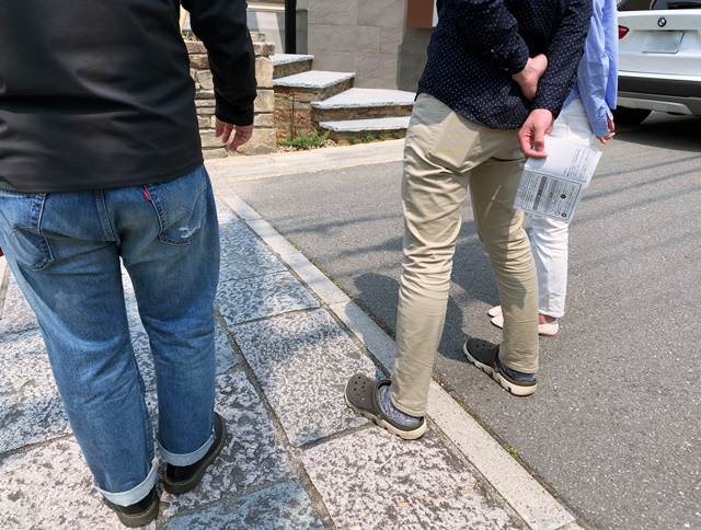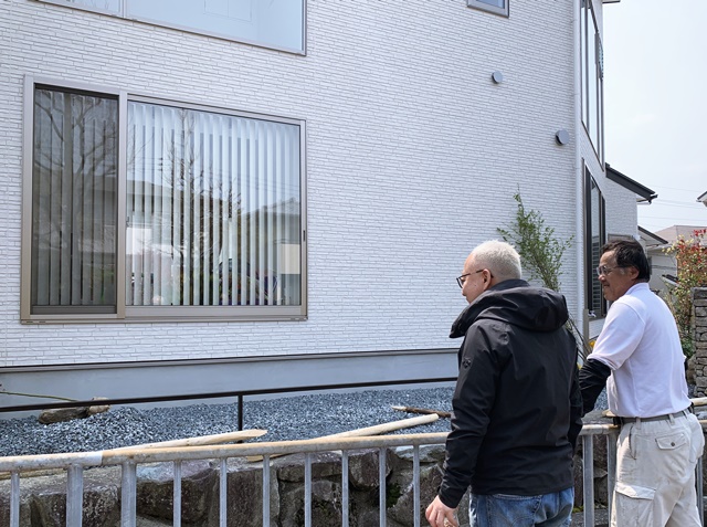この日お休みだったO様、出来上がりつつある外構を見て