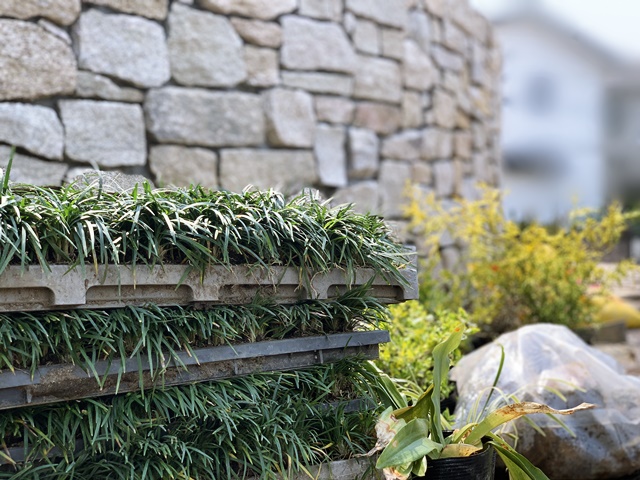 事前に何度も職人さんと打ち合わせをしてたO様邸、イメージ通り順調に植え込みスタート。