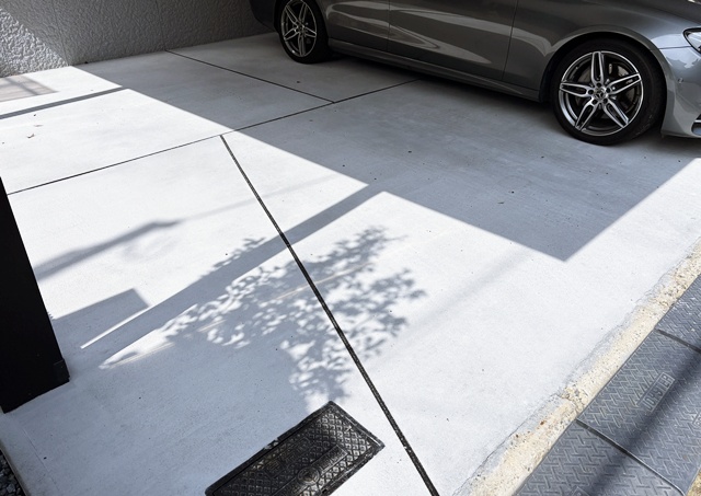 そしてガレージのコンクリートにデザインを兼ねて入れた伸縮目地を確認してたら