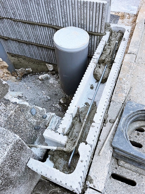 桝を囲い込むように化粧ブロックを積んで・・・