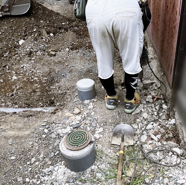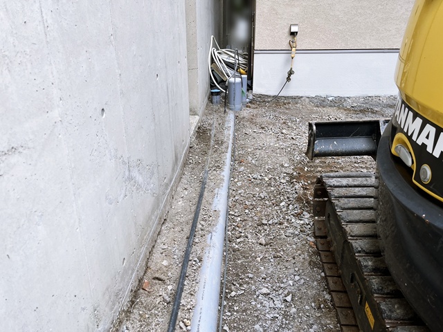 ここ、カーポートの柱の位置だけど、この配管、もう動かせないもんね