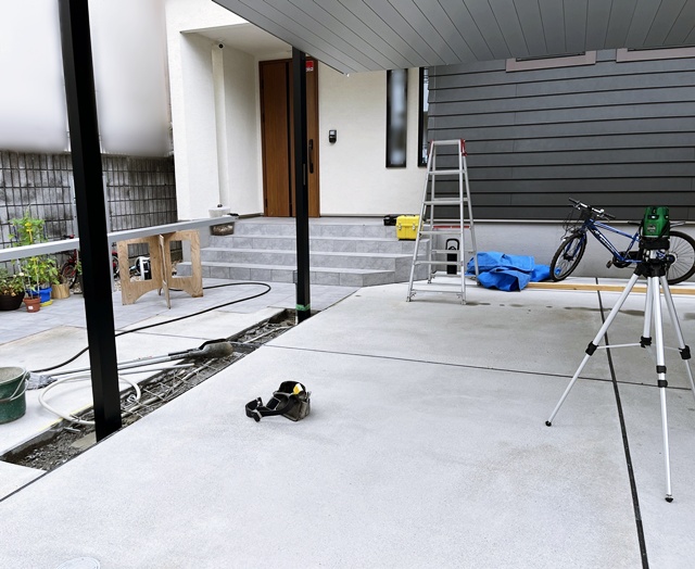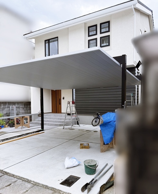 カーポートやオーバードアを設置したら最後に解体したところをコンクリートで埋めて完成。