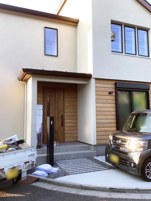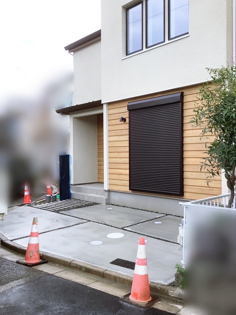 ひとまず植栽以外の外構工事が完成したので車はガレージに停めていただいて