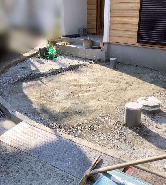 前回のblogでレポートしてた下地工事が終わったアプローチ兼ガレージスペース。