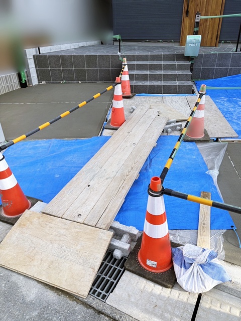 ここを通ってくださいねって場所に職人さんたちに仮設のアプローチを板で作ってもらいました。