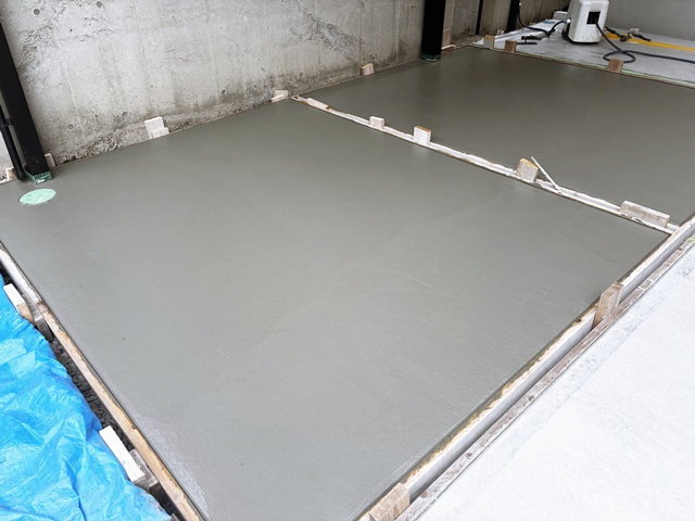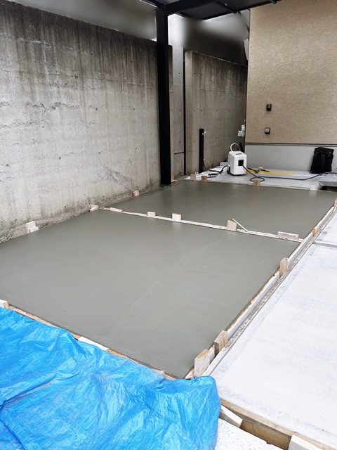 ↓目地の木枠を入れて、コンクリートを流し込んで表面を均したところ。