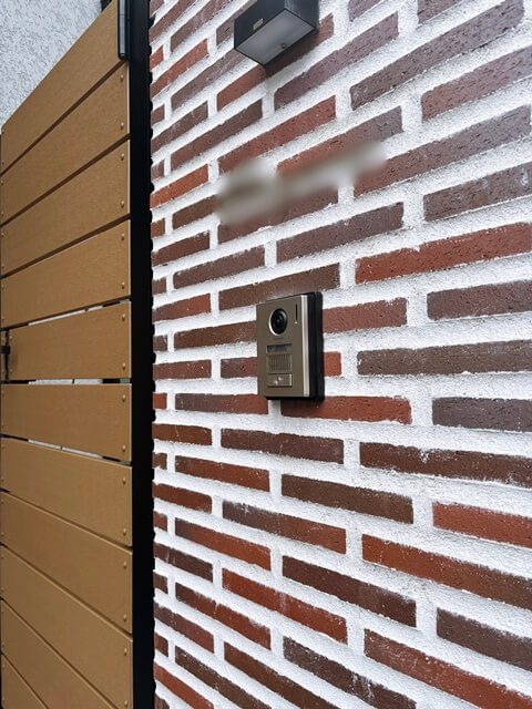 テラスを囲う目隠しフェンスの一角に表札やインターホンをつける塀を作って