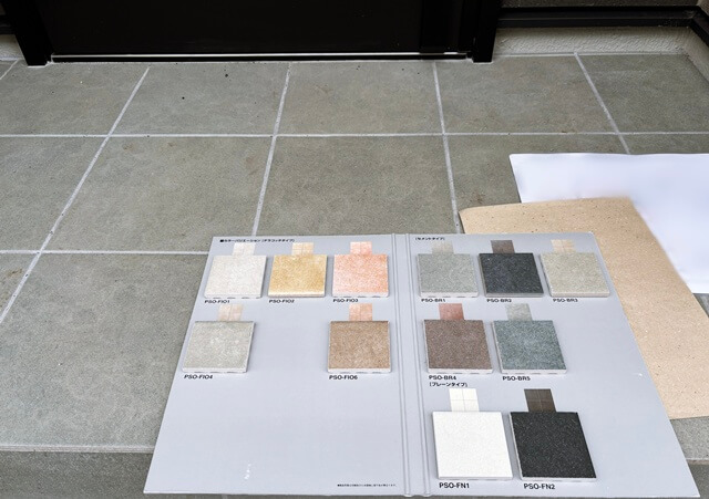 階段のタイルはH様に教えてらもった品番とサンプルとを念のため照らし合わせをして