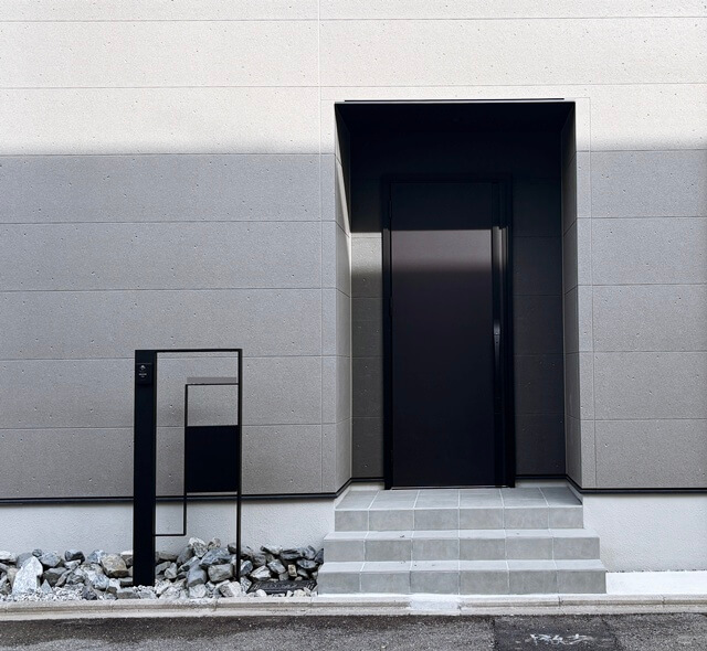 奥行感を出すために奥に外壁が見えるような機能門柱の方が絶対いいなって思ったので