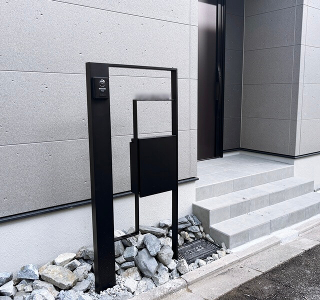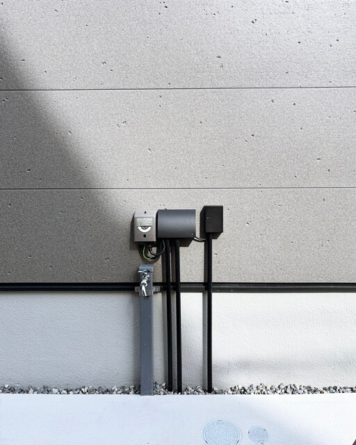 機能門柱と外壁の隙間があまりない位置に設置することになるので
