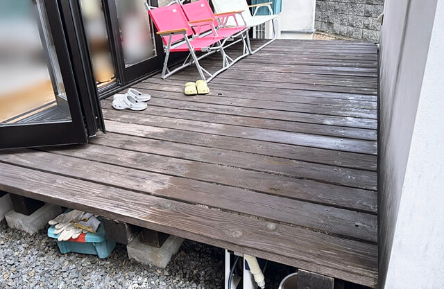 今回そこにあった木製デッキも木樹脂製のデッキにやり替えました。